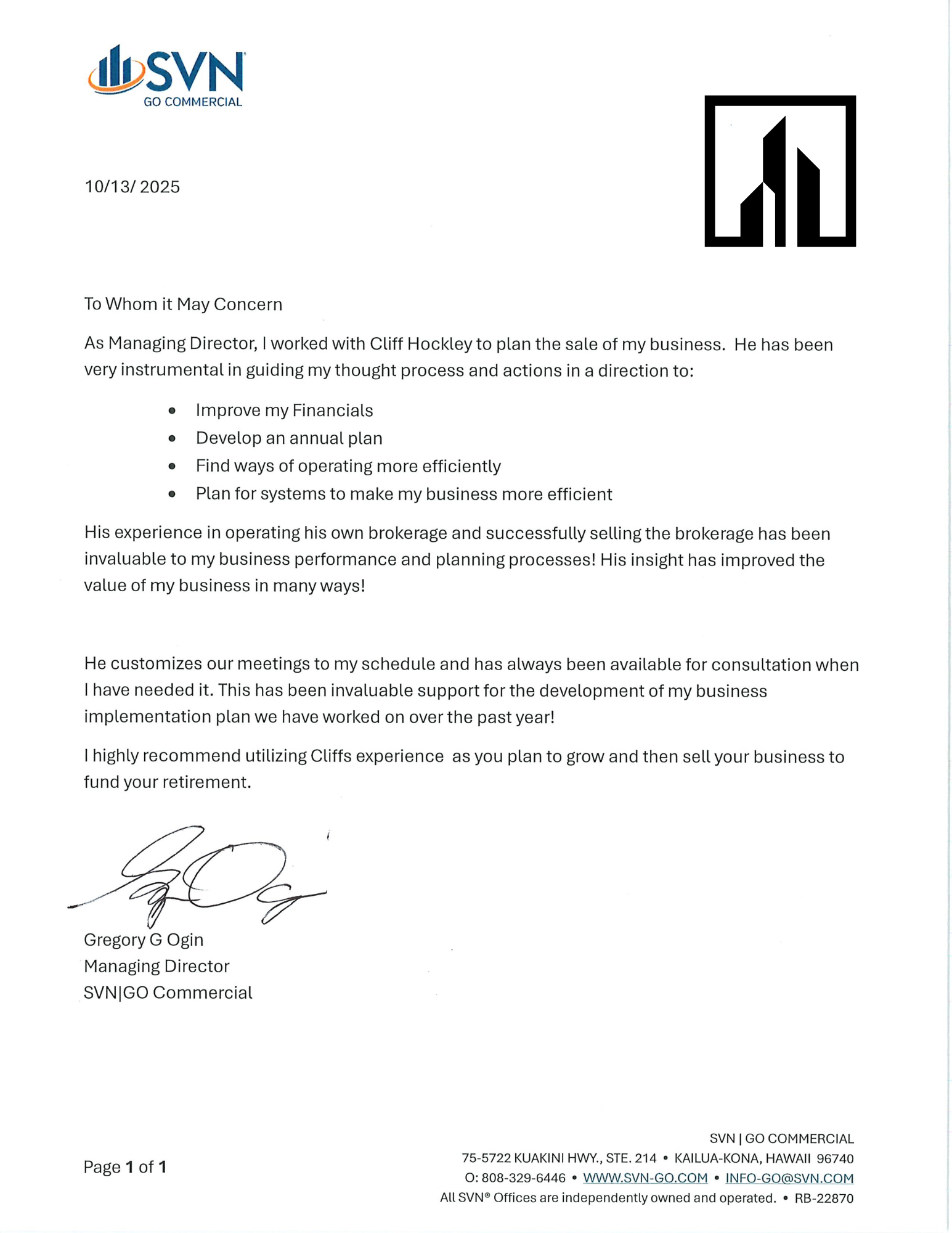 Cliff Hockley consulted me with my real estate business. He has many years of experience and provided profound tips and advice. I can honestly say I am seeing a huge difference in my business. We talked about what I envision, financial reports, over all expenses and more... He is professional and has a great personality. I highly recommend him for your consulting needs. I am so happy with his services and look forward to updating him on my continued success.